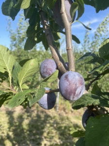 2022 erweiterten wir unsere Obstproduktion und pflanzten 3 ha Zwetschken. Die erste Sorte Katinka wird gleich im Anschluss an die Kirschen reif. Franzi, Moni und Toptaste werden dann den ganzen Sommer über nach und nach geerntet – bis ca. Ende August.